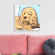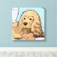 Hier ist eine niedlich umhüllte Leinwand für jeden, der Spaniels Liebe, besonders Cocker-Spaniels. Es zeigt eine Darstellung eines hellbraunen Cocker Spaniels, der sich an einem blauen Kissen anlehnt. Eine lustige Dekoration für ein kleines Jungenzimmer.