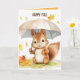 Niedliches Eichhörnchen mit Schirm und Herbstblätter auf weißem Hintergrund