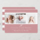 Niedliches Doodle-Herz, 3-Foto-Collage-Geburtsankündigungskarte, auf rot-rosa Hintergründe und weißer Streifen-Muster-Rückseite.