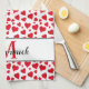 Niedliches Herzmuster Rotes weißes Monogramm Perso Geschirrtuch