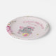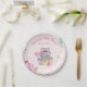 Niedliche Hippo mit Rattle und Ball Paper Teller, die sicher, die Mama zufrieden sein wird. Rosa floraler Hintergrund und Gold machen dieses Design besonders.