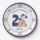 Nautische Teller zum Geburtstag mit einer großen Zahl, niedlicher Hippo-Segler und Ballons. Navy Blue Edge. Ideal für einen kleinen Jungen Sommer Geburtstag. Personalisieren Sie den Text einfach mit der Nummer des Geburtstages. Kate Eden Art