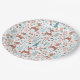 Papier Teller mit einem bezaubernden Weihnachtsmuster. Niedlicher Winterhirsch mit Geweih, der um einen Wald von Bäumen und Gräsern herumprangt.