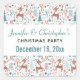 Weihnachts-Party Save the Date Aufkleber mit einem bezaubernden Weihnachtsmuster. Niedlicher Winterhirsch mit Geweih, der um einen Wald von Bäumen und Gräsern herumprangt.