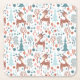 Papier Untersetzer mit einem bezaubernden Weihnachtsmuster. Niedlicher Winterhirsch mit Geweih, der um einen Wald von Bäumen und Gräsern herumprangt.