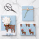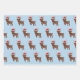 Niedliches Hirsch mit Weihnachtsmannmütze Schnee Weihnachten Kid Wrapping Blatt. Ein niedlicher Rentier mit roter Weihnachtsmannmütze und blauem Hintergrund mit weißen Schneeflocken. Füge Deinen Namen hinzu.