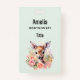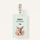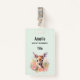 Benennen Sie Abzeichen mit einer schönen Abbildung mit einem niedlichen Hirsch. Umgeben von rosa Rosen und Blume.