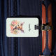 Ein Gepäckanhänger mit einer schönen Abbildung mit einem niedlichen Reh. Umgeben von rosa Rosen und Blume.