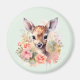 Magnet mit einer schönen Abbildung mit einem niedlichen Hirsch. Umgeben von rosa Rosen und Blume.
