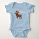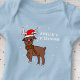 Niedliches Hirsch Zeichnend Baby's 1st Christmas Baby Bodysuit. Hirsche mit Weihnachtsmannmütze und Schneeflocke auf der Nase. Fügen Sie Ihren Namen und Text hinzu.