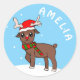 Niedliches Hirsch Zeichnend Schneeflocken Weihnachtskids Sticker. Hirsche mit Weihnachtsmannmütze und Schneeflocke auf der Nase. Fügen Sie Ihren Namen hinzu oder löschen Sie ihn.