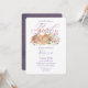 Diese reizende Babydusche lädt mit einem illustrierten Baby-Reh und wunderschönen lila- und Pflaumentönen zum Schlafen ein. Das Reh ruht in einem kleinen Waldgarten mit rosa Blume und Pilzen. Die Party-Informationen werden in eleganten lila lila- und Pflaumenfarben gedruckt. Die Rückseite der Einladung zeichnet sich durch ein lila Samtdesign aus.