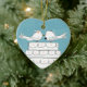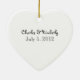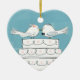 Diese Keramikfeiertagsverzierung macht ein ursprüngliches Hochzeitsgeschenk und ein gehütetes Andenken für den neuen Ehemann und die Ehefrau zur Anzeige auf dem Weihnachtsbaum für Jahre zu gekommen. Niedlicher Vogelkuß auf weißen tiered Hochzeitskuchen. Ein süßes Jungvermähltenpaar. Personifizieren Sie Ihren Text auf der Rückseite mit den Namen des Braut- und Bräutigam- und Hochzeitsdatums. Diese niedliche Weihnachtsverzierung ist- ein Teil einer Sammlung themed Hochzeitsprodukte des weißen Vogels durch Jenns Gekritzel-Welt.
