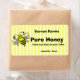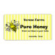 Niedliches Honigwaschetikett mit Cartoon-Grafik einer Honigbiene auf der verlassen Seite. Der Hintergrund ist weiß mit gelben Streifen. Passen Sie den Text an Ihre Bedürfnisse an. Ideal für kleine Unternehmen oder Ihre eigenen Zuhause-Konserven.