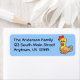 Niedliches Hühnchen am links Rand dieses skurrilen, kahlen Designs.