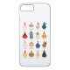 Eine Gruppe farbenfroher niedlicher und lustiger Hennen und Hähne, die in Linien stehend sind.