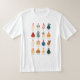Eine Gruppe farbenfroher niedlicher und lustiger Hennen und Hähne, die in Linien stehend sind.