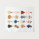 Eine Gruppe farbenfroher niedlicher und lustiger Hennen und Hähne, die in Linien stehend sind.