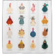 Eine Gruppe farbenfroher niedlicher und lustiger Hennen und Hähne, stehend in Linien.