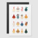 Eine Gruppe farbenfroher niedlicher und lustiger Hennen und Hähne, stehend in Linien.