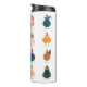 Eine Gruppe farbenfroher niedlicher und lustiger Hennen und Hähne, stehend in Linien.
