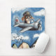 Niedliches Hundeluftflugzeug, Wolkengebirge, Custom Aviator Mouse Pad in Aquarellfarben. Bild mit diesem lustigen Mauspad in Ihrem Büro oder Zuhause! Es wird die Stimmung für den Tag auf jeden Fall verringern. Das Copyright steigt in Stildesigns.