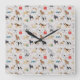 Niedliches Hundsmuster Design Weiß Quadratische Wanduhr