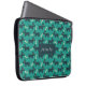 Die Laptop-Hülle wurde mit einem sich wiederholenden Muster entworfen, das ein niedlich lächelndes Hündchen mit Diskettenohren und Hundeknochen aufweist. Grüner Hintergrund.