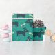 Niedliches Hundsmuster mit Knochen auf grünem Hint Geschenkpapier
