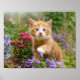 Niedliches Ingwer-Kätzchen im Garten, das mit Blum Poster