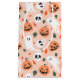 Das Design ist Set vor einem weichen pfirsichfarbenen Hintergrund, was ihm ein helles und fröhliches Halloween-Ambiente verleiht. Ideal für einen lustigen und festlichen Look!