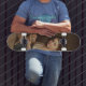 Niedliches Jung-Girl-Eating-Frühstück (Vintage Kun Skateboard