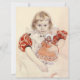 Dieses Design zeigt ein Gemälde des schwedischen Künstlers Carl Larsson (1853-1919). Es zeigt ein süßes junges Mädchen, das ein Kleid mit roten Puffärmeln trägt. Sie lächelt und schaut zum Betrachter. Das Mädchen hält eine Puppe in der Hand; die Puppe trägt auch ein rotes Kleid.