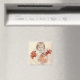 Dieses Design zeigt ein Gemälde des schwedischen Künstlers Carl Larsson (1853-1919). Es zeigt ein süßes junges Mädchen, das ein Kleid mit roten Puffärmeln trägt. Sie lächelt und schaut zum Betrachter. Das Mädchen hält eine Puppe in der Hand; die Puppe trägt auch ein rotes Kleid.