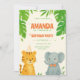 Mit diesem bezaubernden Safari Jungle Geburtstagsgruss werfen Sie die niedliche Dschungeltheater-Geburtstagsparty! Mit einem lächelnden kleinen Tiger in einem Hut aus Party und einem Elefanten mit Bogen-Krawatte ist dieses Design im Aquarellstil gerahmt mit üppig grünen tropischen Blätter und Konfetti, was es perfekt für die Geburtstagsparty eines Jungen oder Mädchens macht. Perfekt für: ・Jungle Safari zum Geburtstag Einladungen ・Party für Tierfreunde ・Gender Neutrale Geburtstagsinvestitionen ・Printable oder Digital Party Vorlagen Design Highlights: ・Handgemalte Aquarelltiere ・Tropisch grüne Blätter & spielerisches Layout ・Weicher, neutraler Hintergrund perfekt zum Übersetzen von Text