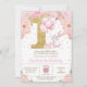 Niedliches Kaninchen Rosa Blütenbraun 1. Geburtsta Einladung