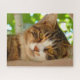 Portrait Foto einer Katze mit klaren grünen Augen, die an einem sonnigen Tag auf einen Baum klettern.