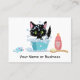 Diese bezaubernde Visitenkarte bietet eine schwarze Katze in der Badewanne, die mit einer Flasche Seife, Bürste und Spielzeugmaus ein Schaumbad bekommt. Ideal für eine Tierpflege oder für den persönlichen Gebrauch.