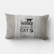 Dieses niedliche Katzenkissen mit Textkissenwurf-Zuhause ist der Ort, an dem die Katze auf grauem Untergrund in Aquarellfarbe steht und für alle Katzenliebhaber zur Wohngestaltung zur Verfügung steht.