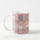 Eine Tasse mit einem niedlichen Katzenmuster. Sie können die Hintergrundfarbe ändern.