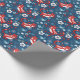 Dieses Verpackungspapier wird durch ein niedliches, in Marineblau und Rot gehaltenes Folkkat-Muster geschmückt. Spaß, ein Geschenk für einen Katzenliebhaber zu packen! Entworfen für Sie von BlackBerry Boulevard.