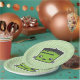 Eine Spaßweise, allen Goo und goop für alle Geister und Ghouls oben zu dienen wird an Ihrem Halloween-Kostüm-Party dieses Jahr essen. Kennzeichnet ein niedliches, grünes Kawaii Frankenstein mit einem weißen und grünen Polkapunktmusterhintergrund. Eine einfache Lösung, zum aufzuräumen, nachdem ein Monster eines Schlag-Party geworfen worden ist!