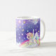 Dieses Ausrüstungsbeschreibungen ein niedlicher Pastellunicorn mit Regenbogen, Sternen, Monden und Herzen auf lila blauem glaxy Hintergrund. Entworfen durch www.chibibunny.com