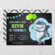 Erleben Sie Ihren Gast mit dieser Geburtstagsfeier zum Thema Hai mit einem niedlichen Hai, der grüne Ballons mit moderner Typografie vor einem Kreideboden hält. Fügen Sie einfach Ihre Veranstaltungsdetails zu dieser einfach zu bedienenden Vorlage hinzu, um sie zu einer einmaligen Einladung zu machen. Dreh die Karte auf, um ein elegantes Zickzack Muster auf der Kartenrückseite zu zeigen.