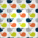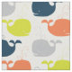 Kleine Wale in Blau, Grau, Orange und Grün.