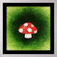Eine niedliche Abbildung eines gepunkteten roten Pilzes. Hintergrund ist eine grüne, verwitterte Textur.