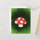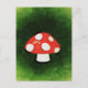 Eine niedliche Abbildung eines gepunkteten roten Pilzes. Hintergrund ist eine grüne, verwitterte Textur.
