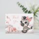 Süße Dankeskarten mit niedlichem kleinen weiblichen Zebra, das eine süße rosa Schleife trägt, mit einigen Liebesherzen auf Wolken sitzend