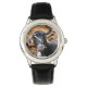 Uhr, Klassische Damenuhr mit schwarzen Lederarmband