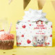 Das niedliche Muster auf diesem Weihnachtsverpackungspapier ist ein bezaubernder kleiner Koala-Bär. Der Bär klettert aus einem Weihnachtsgeschenk, das mit einem roten Bogen und roten Beeren dekoriert ist. Zwischen den Bärenbildern befindet sich Ihr eigener Text in rot. Alles wird auf einem mehrfarbigen, runden Kugel konfetti Hintergrund platziert, der mit roten Herzen und einigen goldenen Sternen bestreut ist. Dies ist ein perfektes Papier für Großeltern, Eltern, Tanten und Onkel, um Familiengeschenke einzupacken. Sehen Sie sich die Geschenketiketten und andere passende Produkte in unserem Shop an.